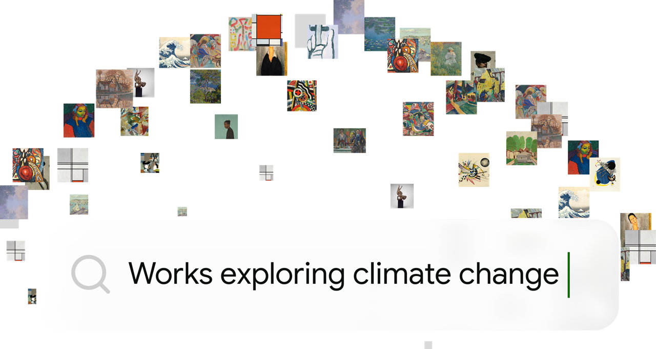 Query your collection naturally: structured searches like "works on paper by Picasso, 1930–32, US$50–100k" sit alongside open questions like "works by contemporary artists engaging with climate change."